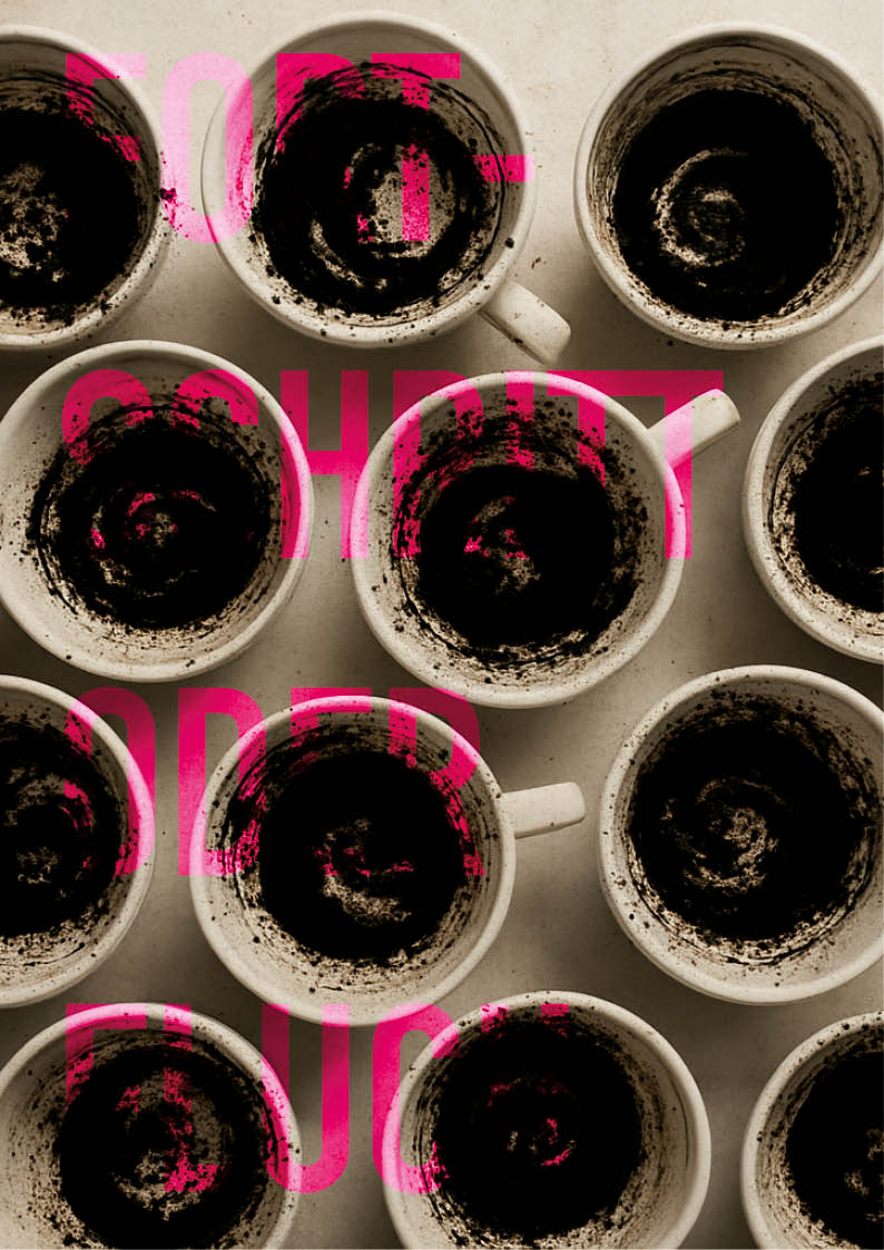 Im Magazinbeitrag thematisiere ich den Zusammenhang von Ritual, Kontrolle und Fortschrittsglauben. Die verwendeten Textfragmente, in leuchtendem Magenta, greifen die Ästhetik des Maschinenoutputs auf: warnend, beschwörend, lesend. Die visuelle Serie übersetzt Kaffeesatzmuster in digitale Störungen – ein Echo dessen, was von uns bleibt.